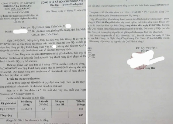 Theo phản ánh, nội dung được đăng tải trên mạng xã hội tập trung vào việc khách hàng Thân Văn M, tổ dân phố Giáp Tiêu, phường Bắc Giang phải nộp hơn 270 nghìn đồng tiền lãi chậm trả và tiền phạt vi phạm hợp đồng dù chỉ chậm thanh toán tiền điện 1 ngày.