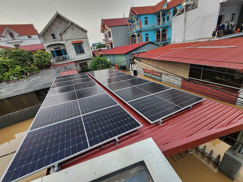 Hệ thống điện mặt trời mái nhà của gia đình anh Trung giúp cung cấp điện cho cả gia đình trong những ngày mưa lũ.