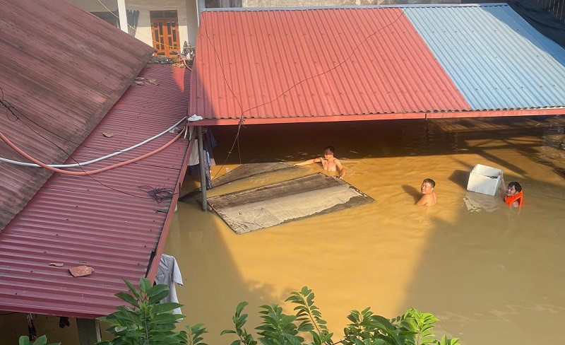 Khoảng sân của gia đình anh Trung ngập sâu khoảng 2m trong những ngày mưa lũ lịch sử. (Ảnh: Nguyễn Thành Trung)
