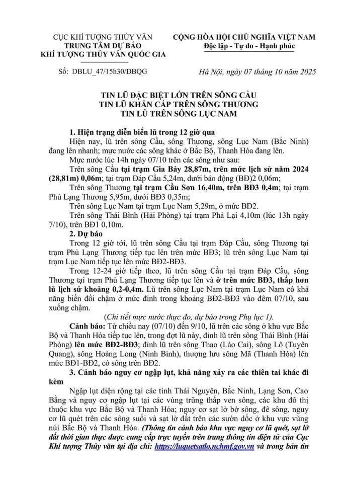 Tin tức BẮC NINH: TIN LŨ ĐẶC BIỆT LỚN TRÊN SÔNG CẦU; LŨ KHẨN CẤP TRÊN SÔNG THƯƠNG; LŨ TRÊN SÔNG LỤC NAM Admin01 Tháng 10 7, 2025